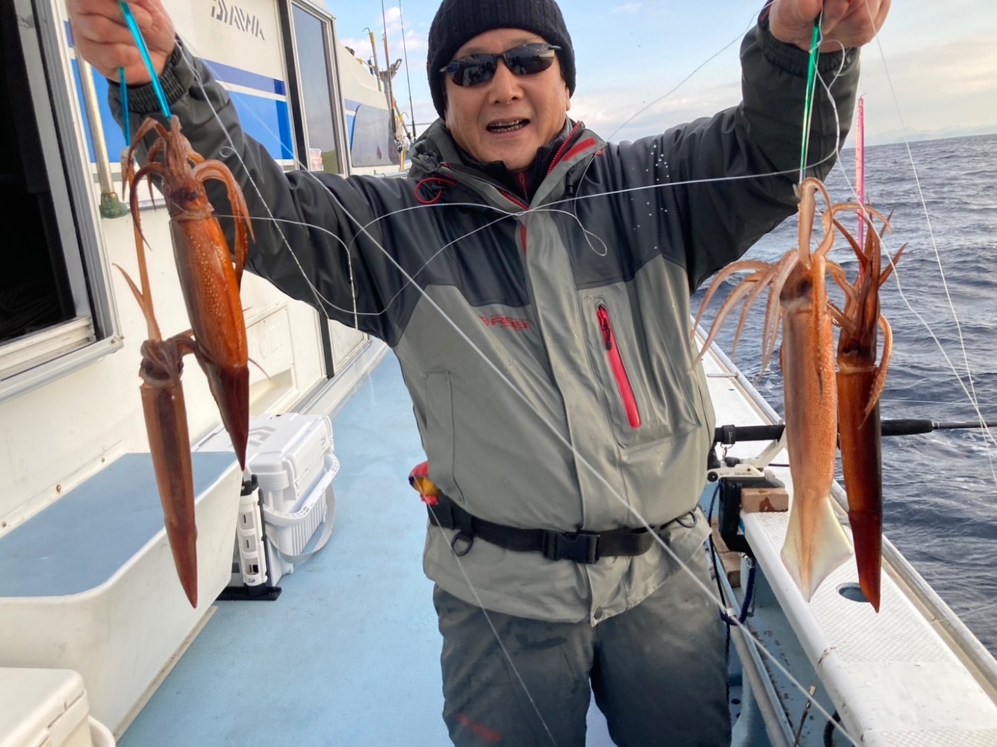 今日もヤリイカ狙い白浜沖へ向かい、やはり反応見つかれば多点掛け有り盛り上がりました‼️