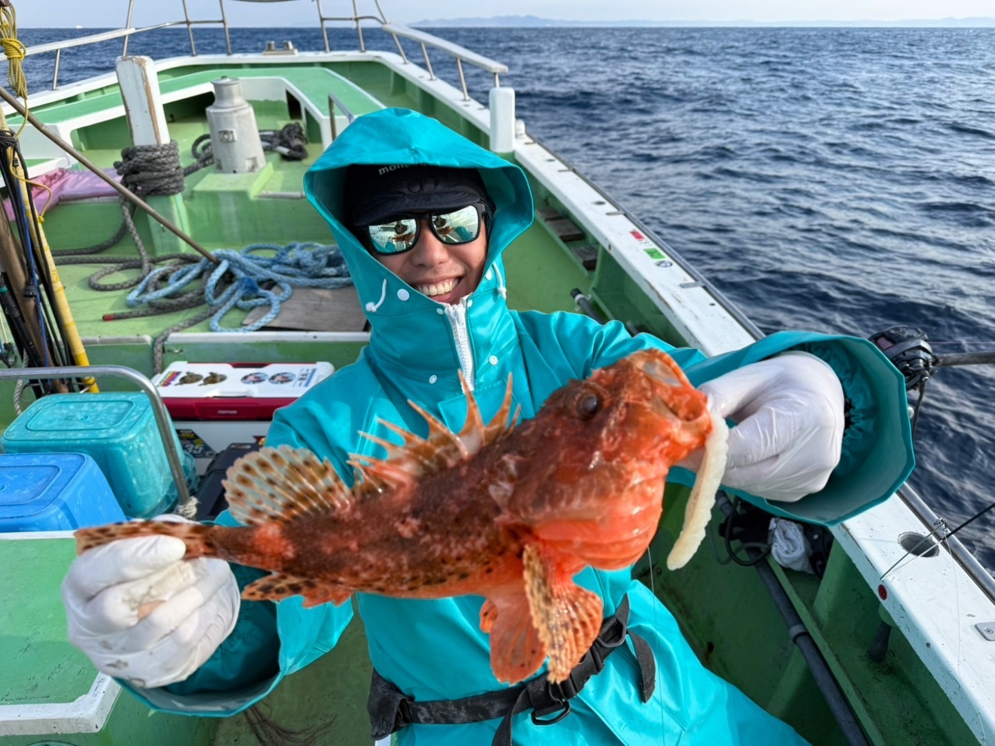 終盤潮の変わり目で食い活発になり、今日はみなさん上手に掛けてくれる方々でしたので最後の流し途中で2名様規定数に到達、全員GET出来て⭕️